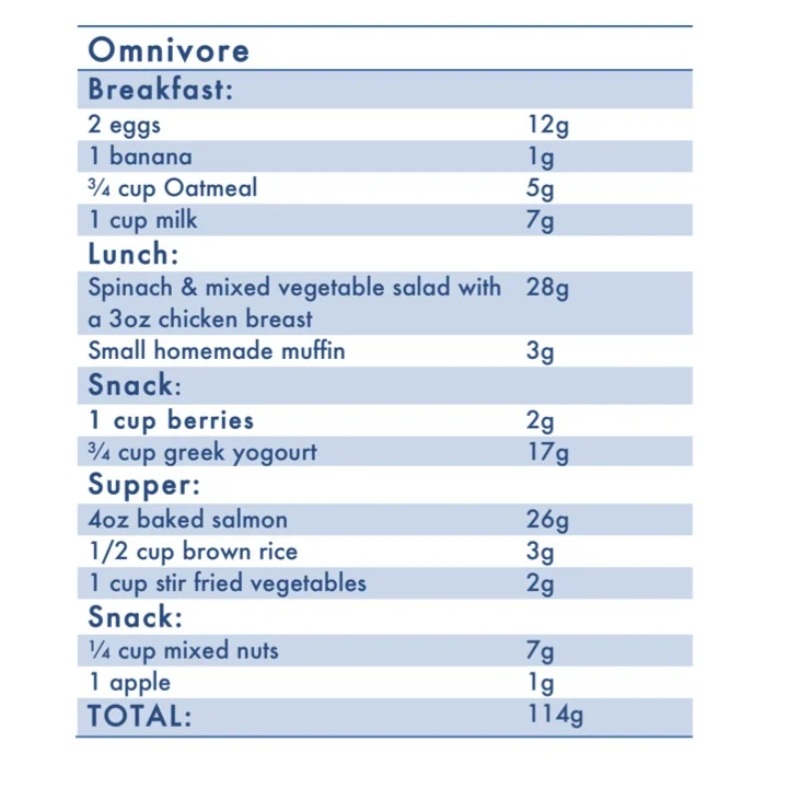As you can see from the two examples below, it is absolutely possible to meet your daily protein quota from food alone.